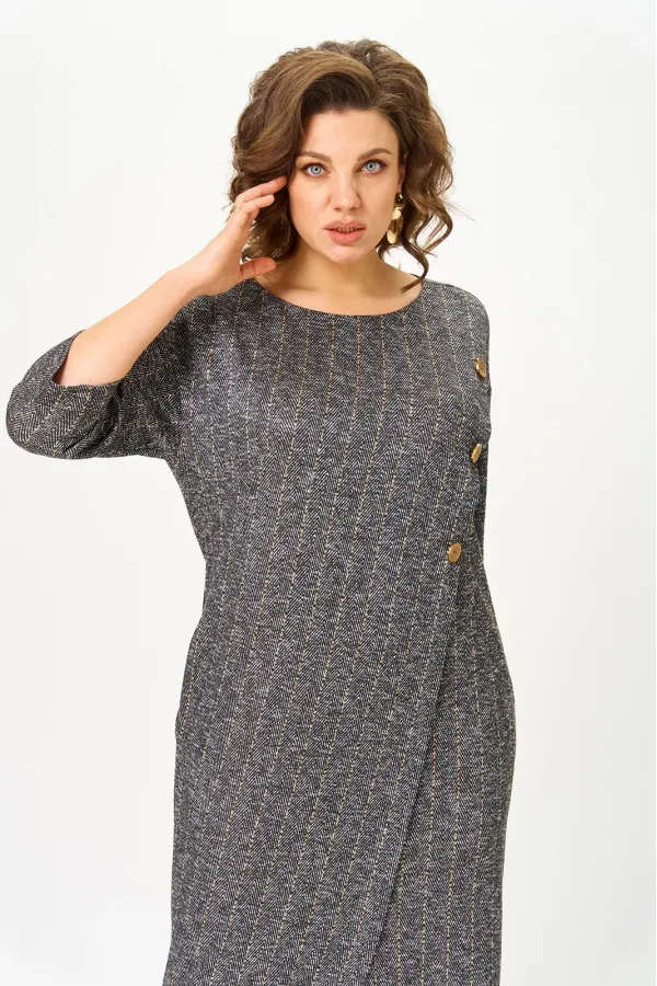 А имитация асимметричной застёжки с декоративными пуговицами добавляет изюминку и визуально вытягивает фигуру.