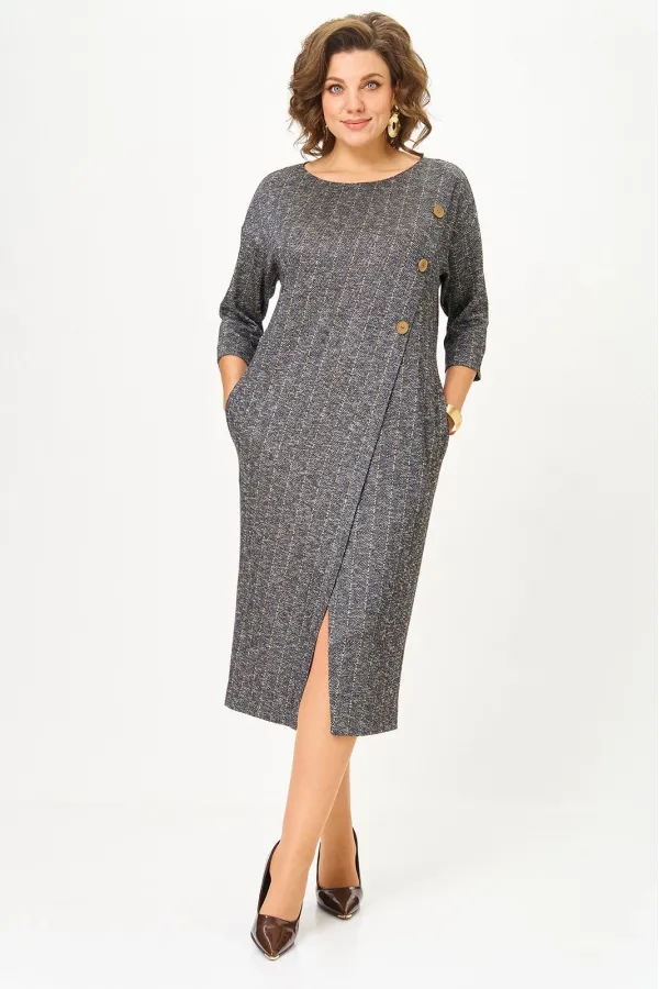 Это платье создано для женщины, которая выбирает уверенность, комфорт и безупречный вкус. Трикотаж с мелким твидовым узором мягко держит форму, не подчеркивая лишнего и создавая элегантный силуэт. А имитация асимметрично... Читать далее...
