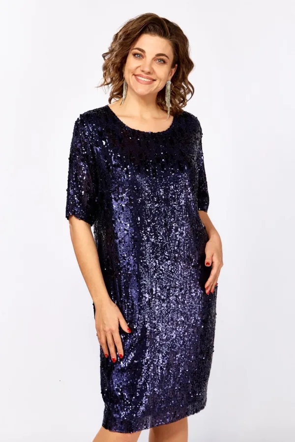 Нарядное платье из пайеток, свободного покроя. Горловина платья округлой формы на обтачке, полочка и спинка свободного покроя. Рукав втачной, укороченный, выполнен из пайеток. Простое в исполнении, но выполненное из эффектной ткани прекрасно дополнит ваш образ!