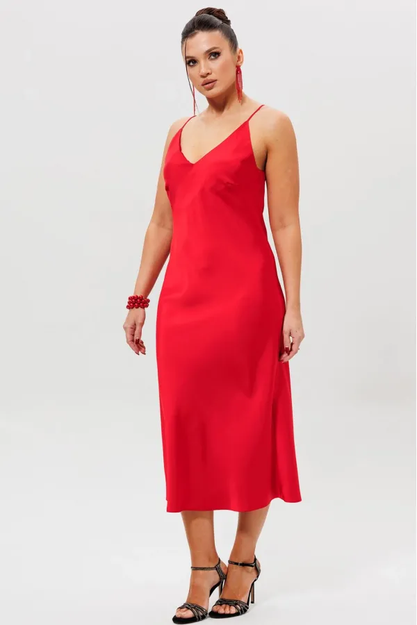 Элегантное атласное платье-комбинация — идеальный выбор для тех, кто ценит роскошь и комфорт в повседневной жизни. Модель выполнена из гладкого атласа, который придает образу блеск и шик. V-образный вырез подчеркивает линию шеи и создает эффект стройности. Платье доступно в трех цветах: яркий красный, нежный голубой и классический черный, что позволяет создавать разнообразные образы. Красный цвет станет отличным выбором для вечерних мероприятий, добавляя образу дерзости и энергии, голубой — идеален для создания свежего и романтичного образа, а черный — подойдет для офиса или деловых встреч, создавая строгий и элегантный образ. Гладкий атлас обеспечивает приятное ощущение на коже и добавляет образу роскоши. V-образный вырез и тонкие бретели делают платье модным и привлекательным. Подходит как для вечерних мероприятий, так и для повседневной носки. Комбинируйте с юбкой-миди и высокими каблуками для создания эффектного образа. Платье отлично комбинируется с кружевной блузкой 1160бл, с белым жакетом 1048ж