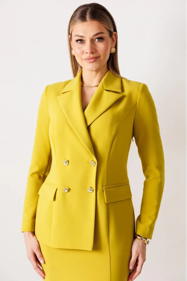 Сомневаетесь, выбрать для важной встречи строгий костюм или элегантное платье? Предлагаем блестящий компромисс! Платье-блейзер полуприлегающего силуэта, длиной ниже колена. Имитация жакета придаёт деловой стиль. Воротник пиджачного типа. Застёжка двубортная на 2 пары пуговиц, в левом боковом шве- потайная молния. На полочке присутствует рельеф из проймы до низа,в котором обработана шлица, обработаны карманы «в рамку с клапаном». Спинка со средним швом и талевыми вытачками. Рукава длинные, двушовные. Платье частично на подкладке. Вы получаете весь эффект от сложного ансамбля, минуя лишние сложности. Платье подчеркивает Ваш статус и деловой настрой.