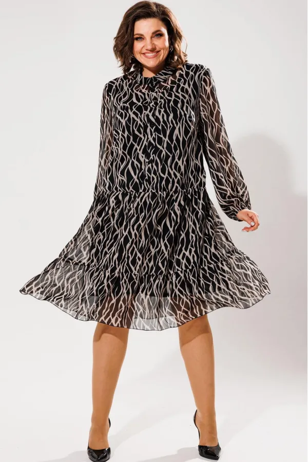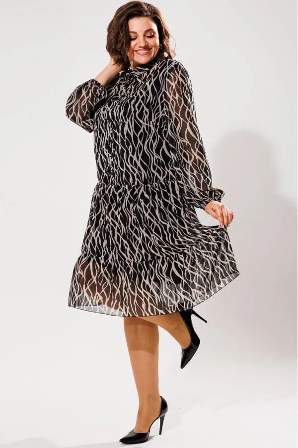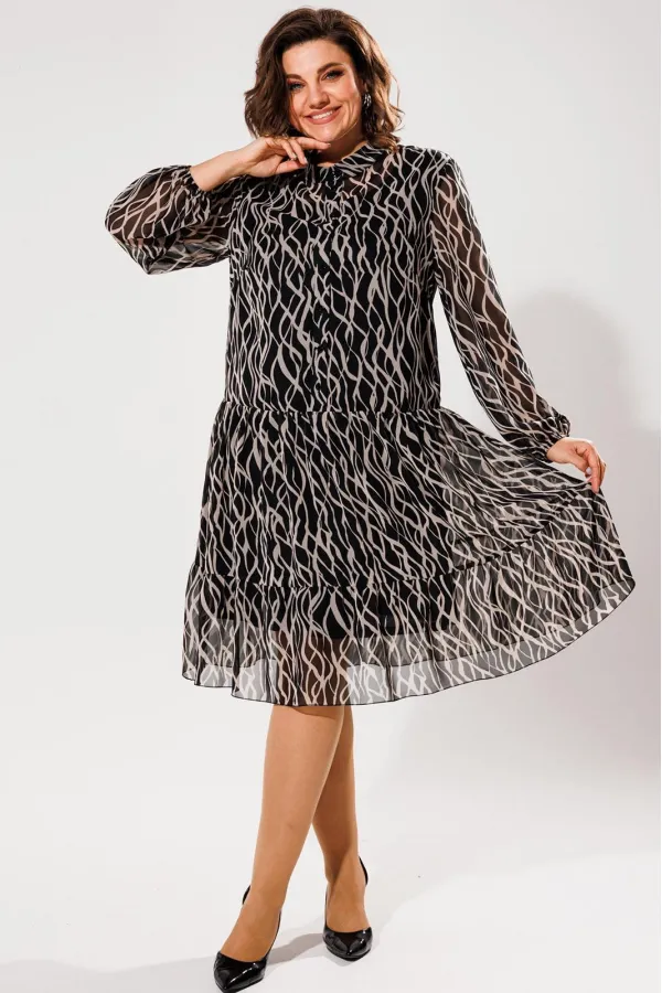 Нарядное женское платье свободного силуэта, выполненное из шифона (не тянется) на эластичной подкладке. Подкладка соединена с платьем, рукава платья без подкладки. Горловина платья оформлена стойкой. Перед с отрезным лиф... Читать далее...