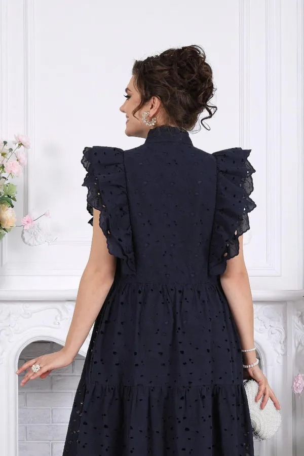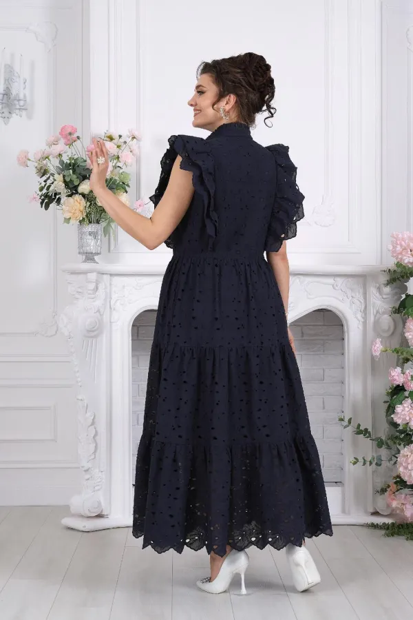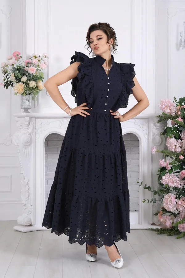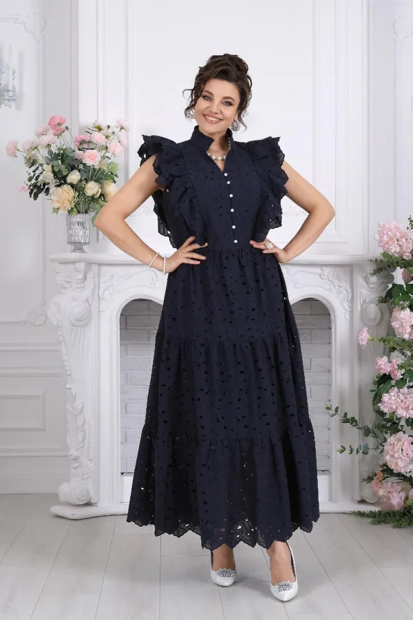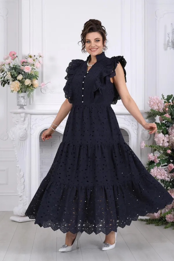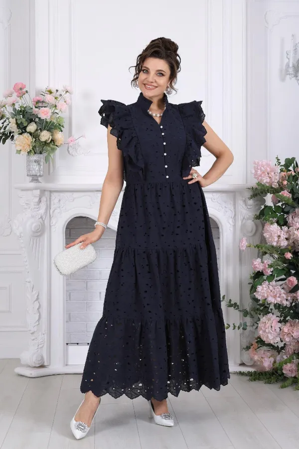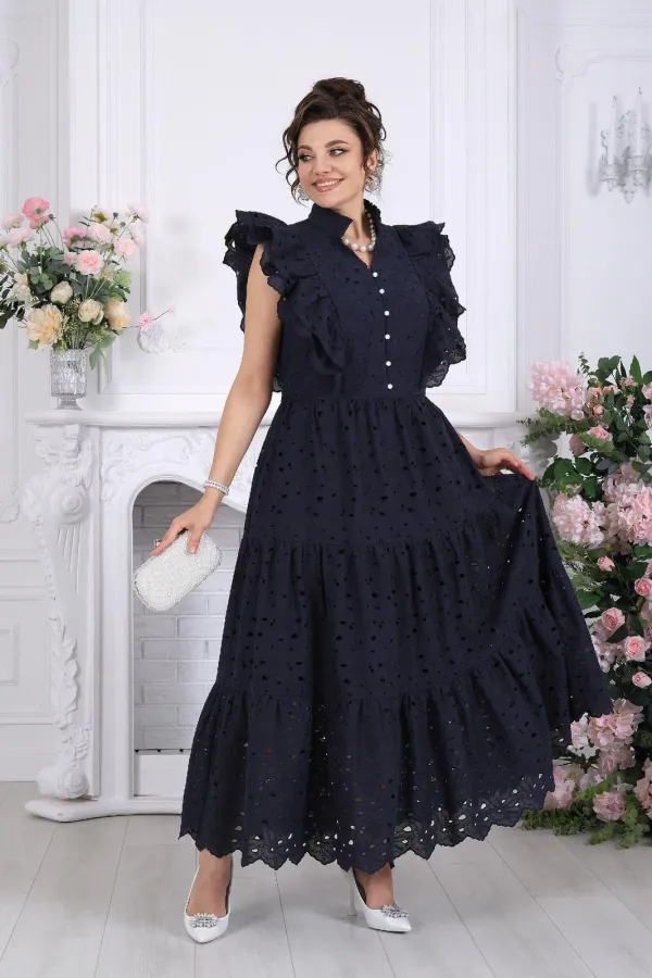 Это не просто платье — это готовый праздничный образ. Эффектное хлопковое «ришелье» с ажурным рисунком создаёт ощущение лёгкости и торжественности, словно вы уже на особом событии, где каждый взгляд прикован к вам.