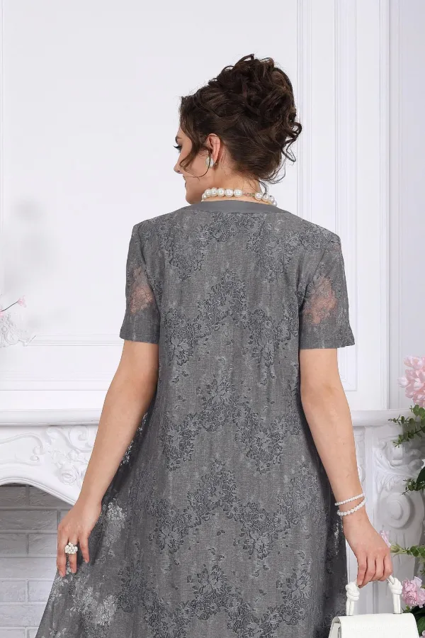А-силуэт мягко скользит по фигуре, не подчеркивая лишнего и даря ощущение свободы. Полупрозрачный гипюр с деликатным рисунком добавляет глубину образу, а хлопковая подкладка делает его комфортным даже в течение долгого дня.