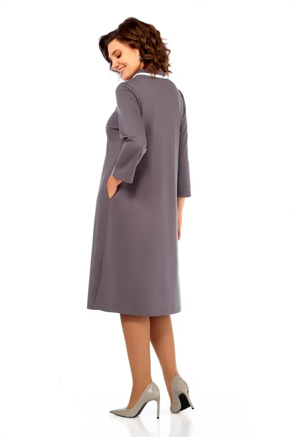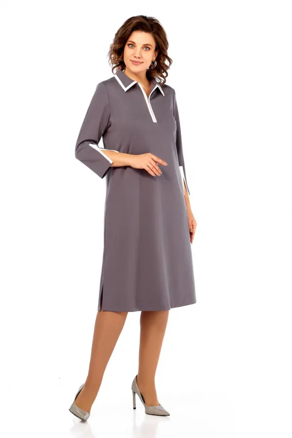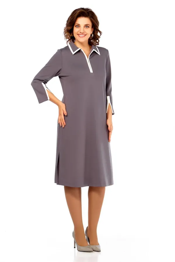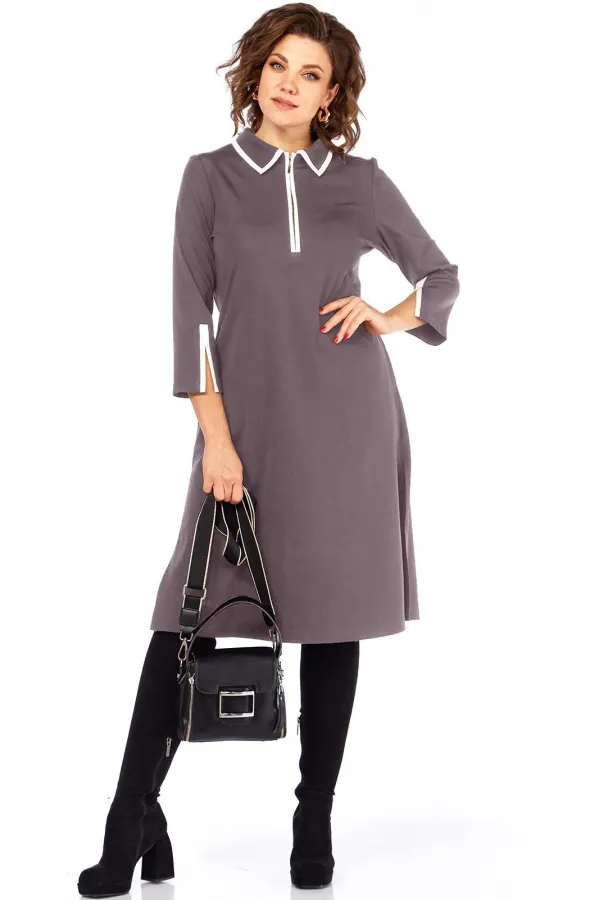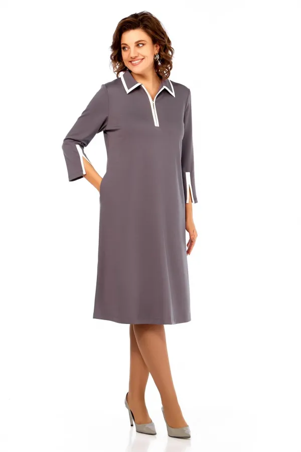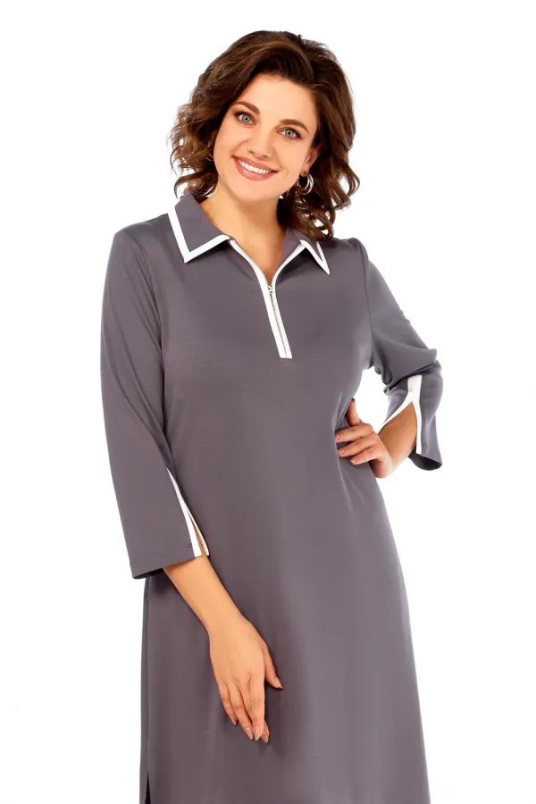 Интересное плать из премиального трикотажного полотна, с воротником поло и застежкой-молнией по центру. Контрастная отделка, А-силуэт, разрезы в боковых швах. Рукав втачной с контрастной отделкой-планкой по низу.