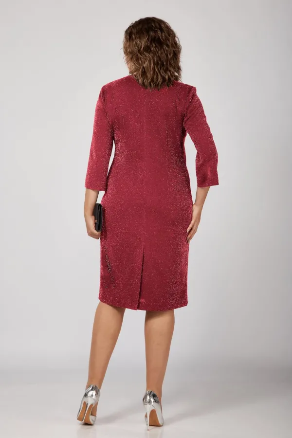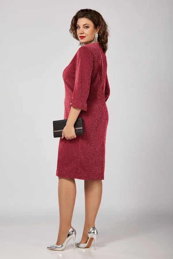 Платье полуприлегающего силуэта, втачного покроя. Горловина округлой формы с капелькой по спинке в среднем шве. Рукав по низу со складками, на манжете на одну пуговицу.