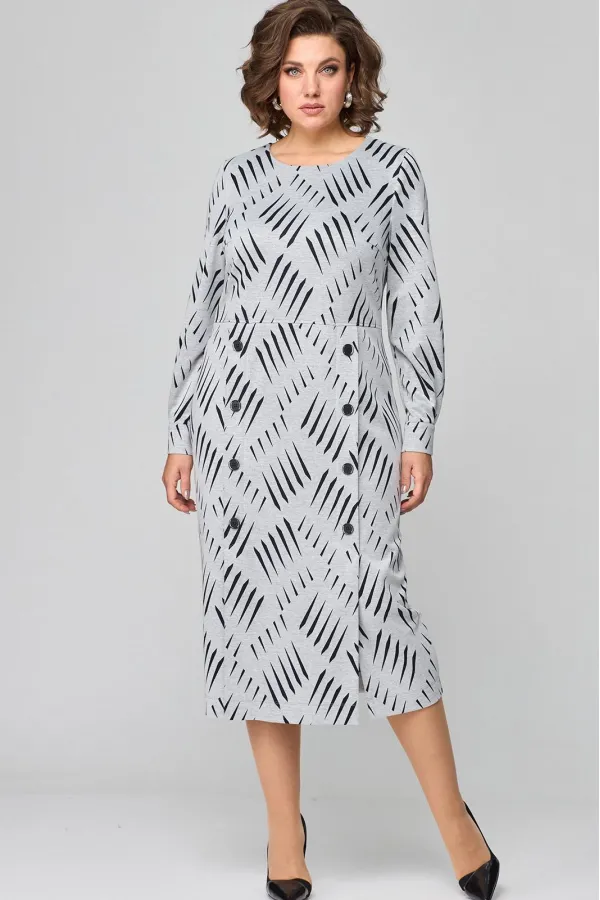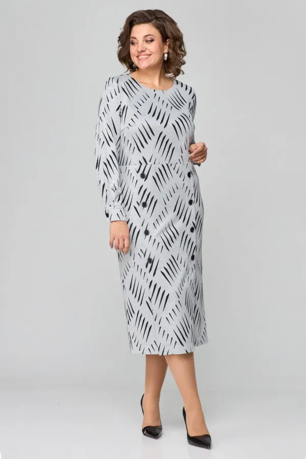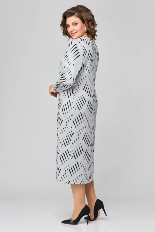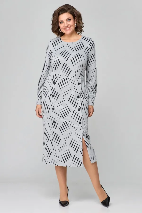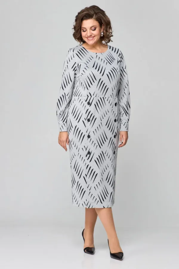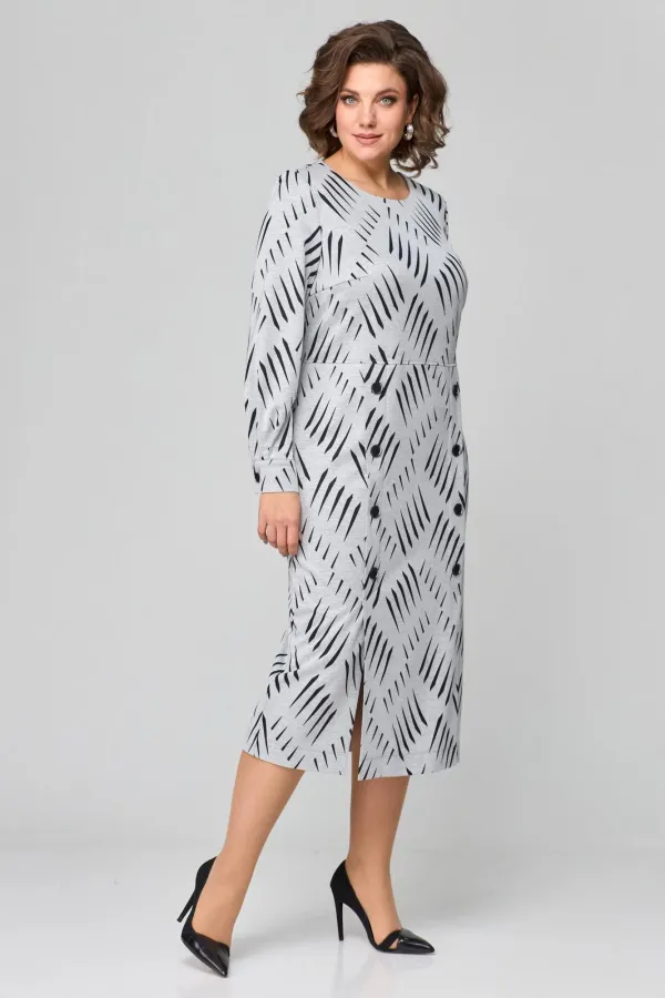 Платье полуприлегающего силуэта, втачного покроя. Горловина округлой формы с капелькой по спинке в среднем шве. Рукав по низу со складками, на манжете на одну пуговицу. На переде расположены нагрудные вытачки, идущие из ... Читать далее...