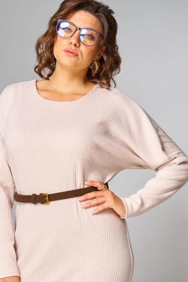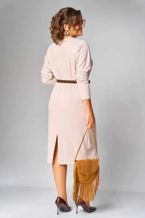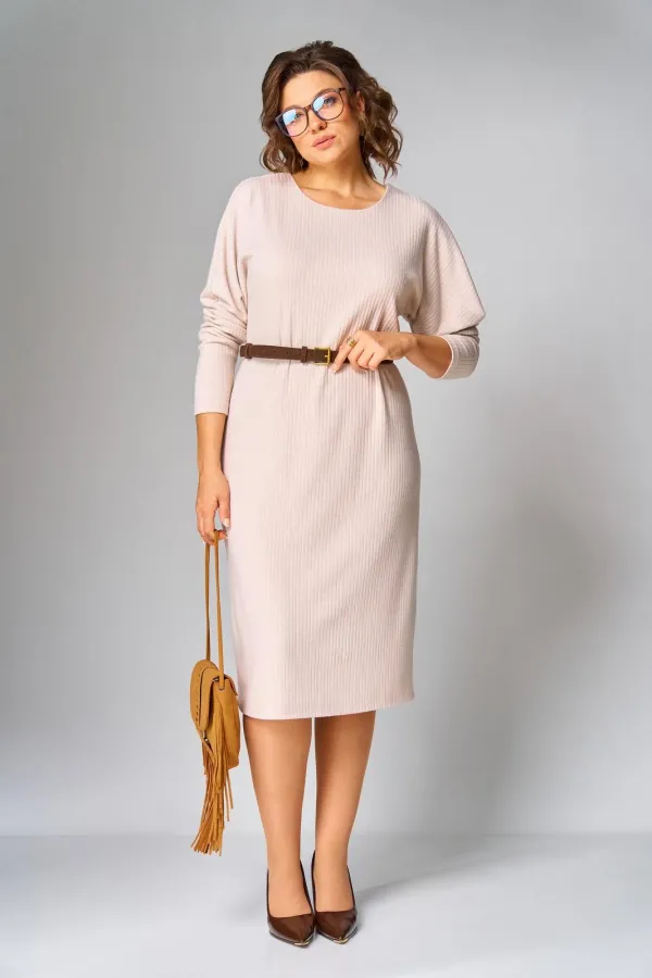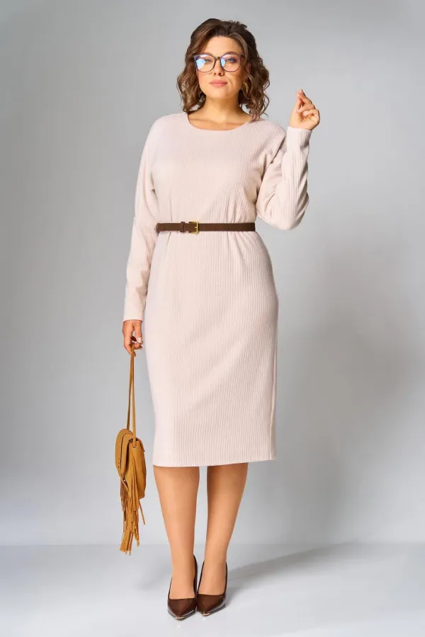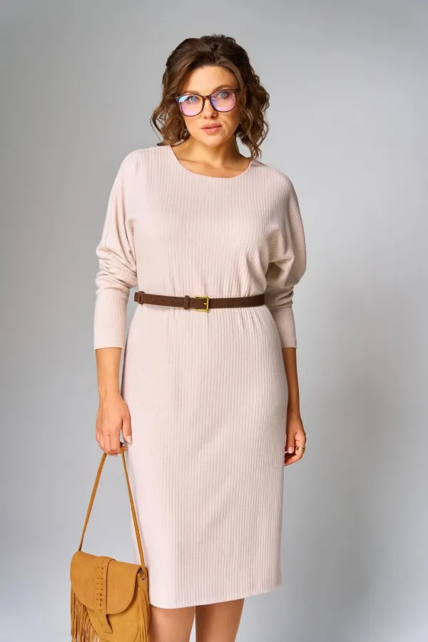 Платье женское полуприлегающего силуэта, цельнокроеного покроя рукава, выполнено из трикотажного полотна в рубчик.