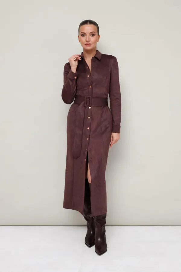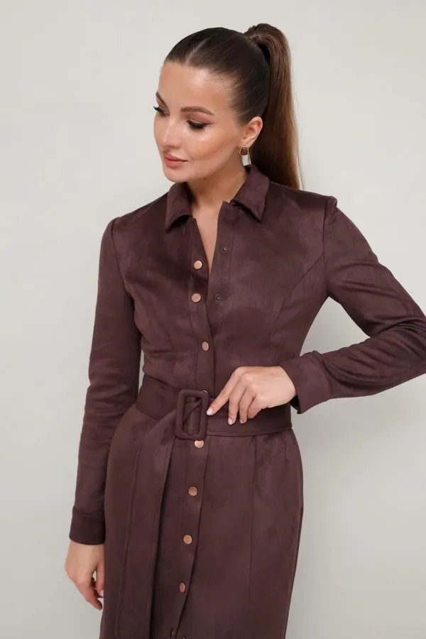 Силуэтное платье в длине миди, выполнено из экозамши.