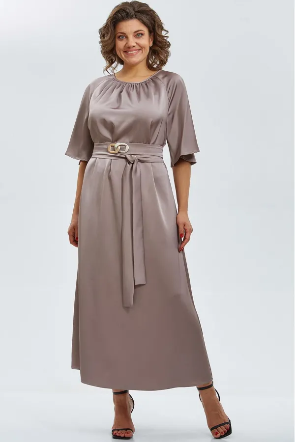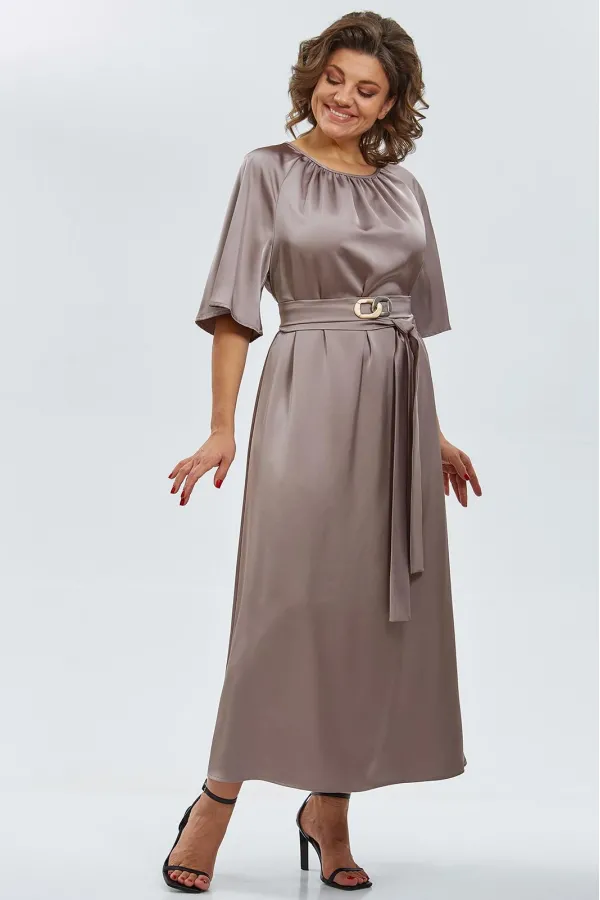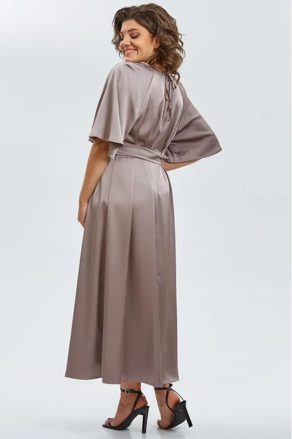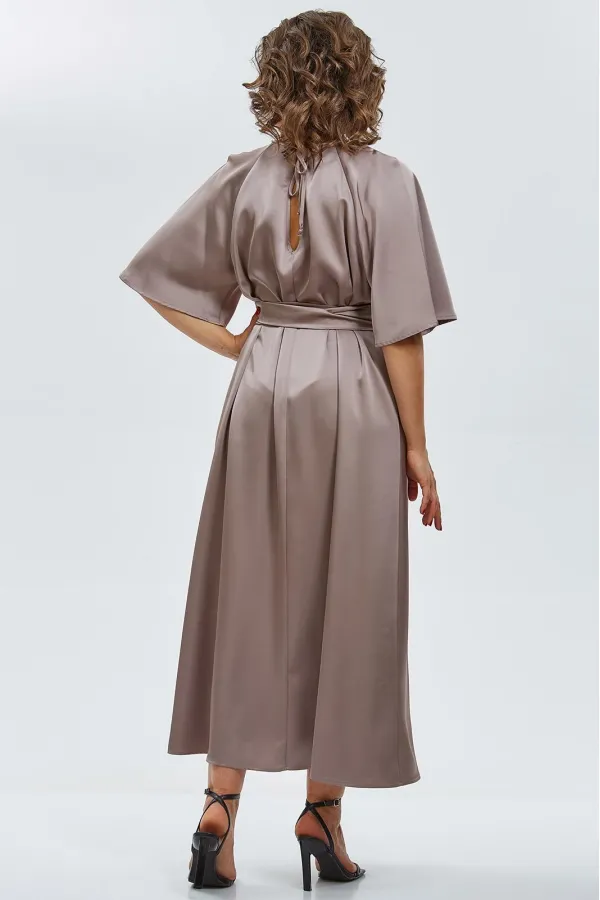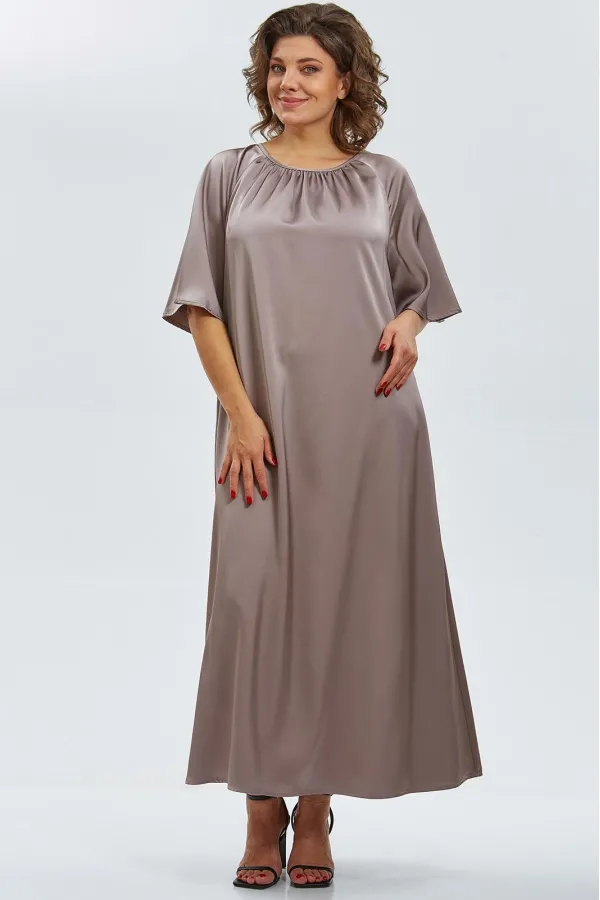 Элегантное макси-платье из двустороннего сатина воплощает утончённость и изысканность. Минималистичный крой подчёркивает плавность силуэта, а округлый вырез горловины со сборкой спереди добавляет мягкости образу. Рукава реглан, расширяющиеся к низу, создают воздушное движение ткани при каждом шаге.