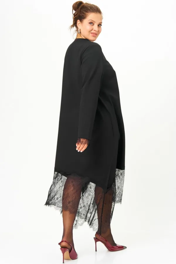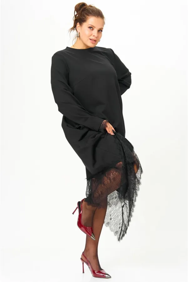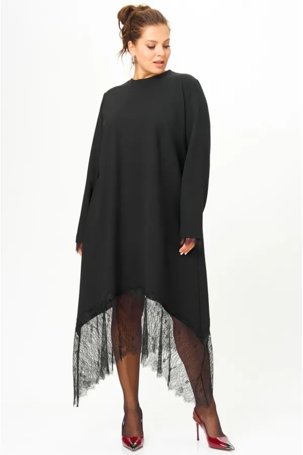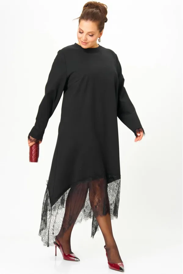 Эффектное платье выполнено из трикотажного полотна. Платье свободного трапециевидного силуэта, длиной макси. Рукав втачной длинный с манжеткой из кружева. В боковых швах имеются функциональные карманы. Низ платья оформлен кружевным воланом. Длинный фасон дает возможность создания стильного образа. Если немножко пофантазировать с обувью получится много стильных и интересных вариантов образа.