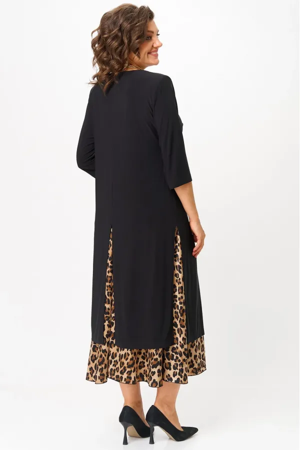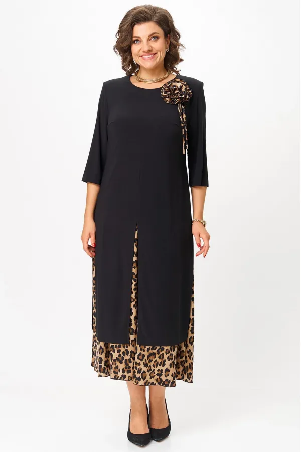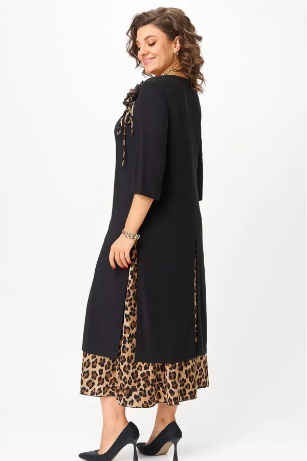 Нижнее платье силуэт полуприлегающий, по низу присборенный волан из шифона с модным леопардовым принтом.