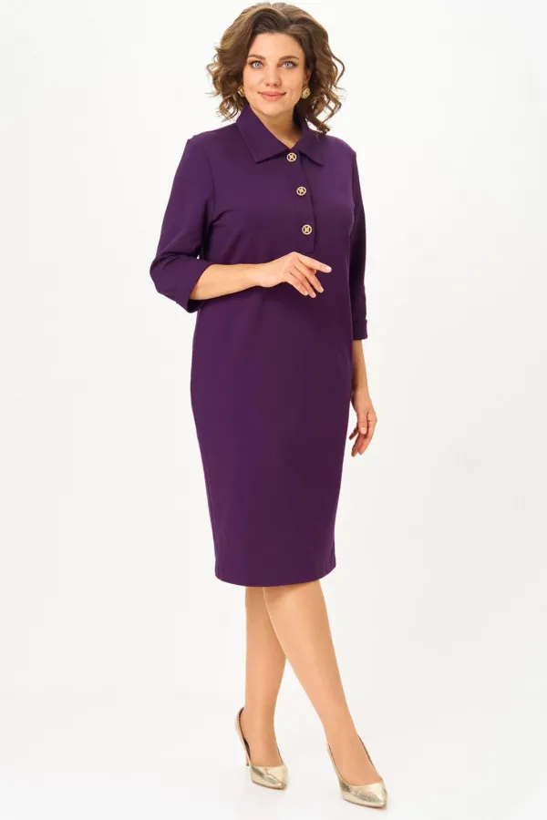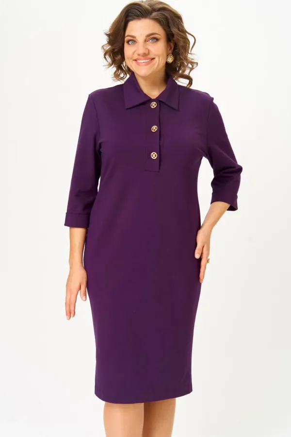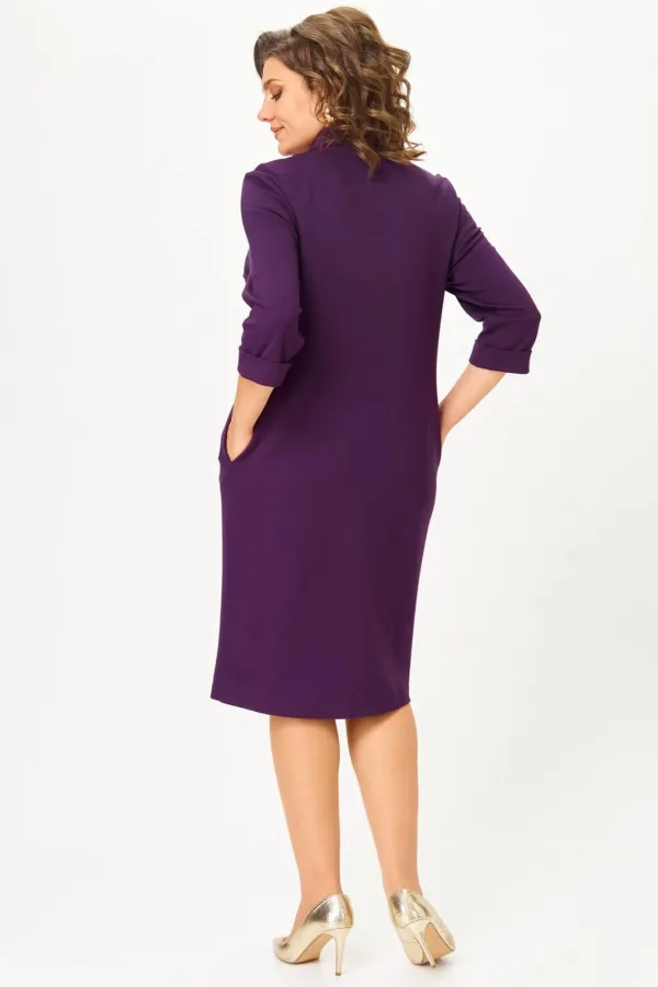 Платье женское из трикотажного полотна, станет идеальным выбором для создания стильного и комфортного образа. Платье полуприлегающего силуэта с втачным рукавом. По горловине отложной воротник. Застежка на петли и пуговицы по планке переда. Спинка цельная. В боковых швах обработаны карманы. Рукав длиной 7/8, по низу рукава отложная манжета.