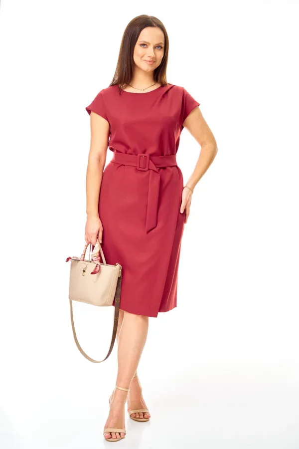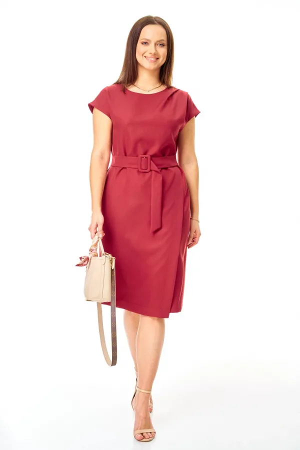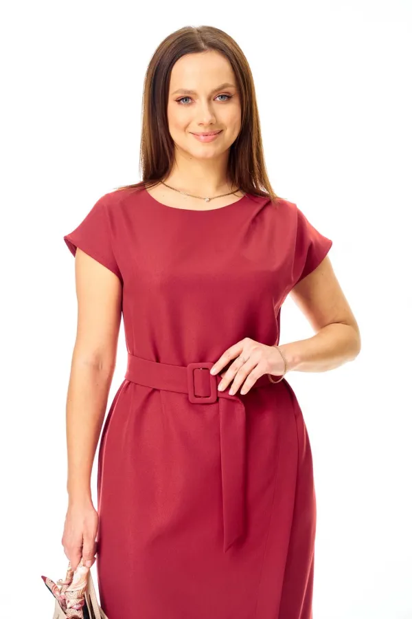 Полуприлегающего силуэта, перед с глубоким запахом. По левому плечу складки. Застежка молния по спинке. Горловина овальная. Плечо спущено. Пояс с пряжкой.