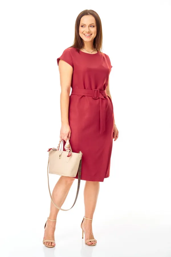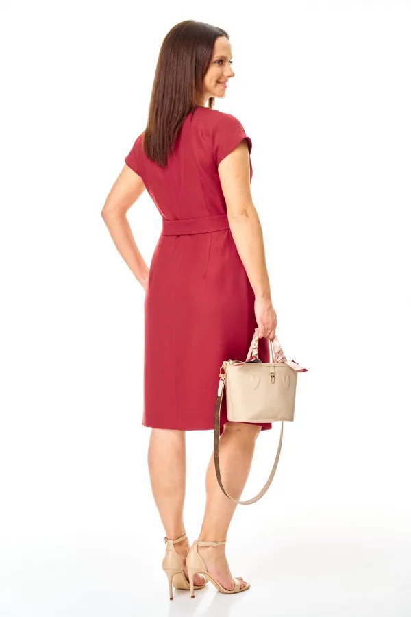 Платье нарядное из плотной плательной ткани с блеском. Полуприлегающего силуэта, перед с глубоким запахом. По левому плечу складки. Застежка молния по спинке. Горловина овальная. Плечо спущено. Пояс с пряжкой. Длина п... Читать далее...