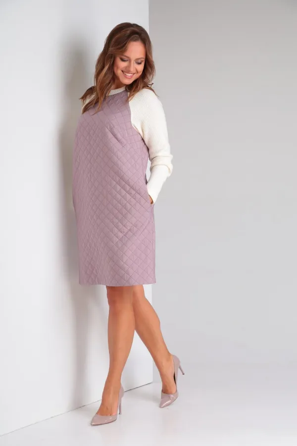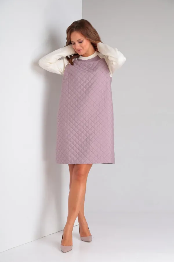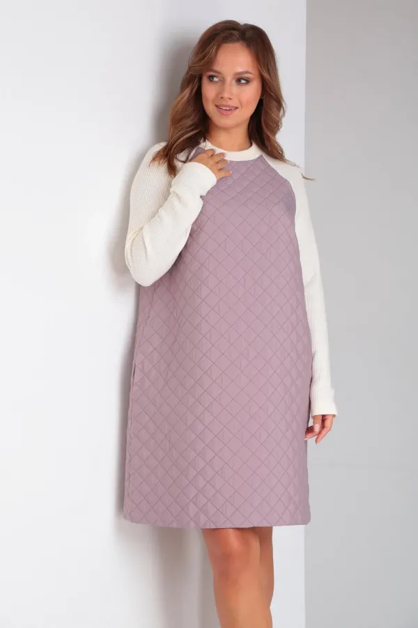 Платье женское А-силуэта свободного покроя из двух видов ткани: стежка и трикотажное полотно (отделочная ткань). Перед цельный с нагрудными вытачками. По спинке кокетка с центральной застедкой на петли и пуговицы. Рукав ... Читать далее...