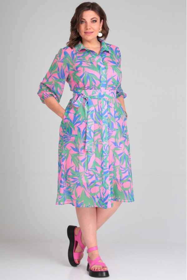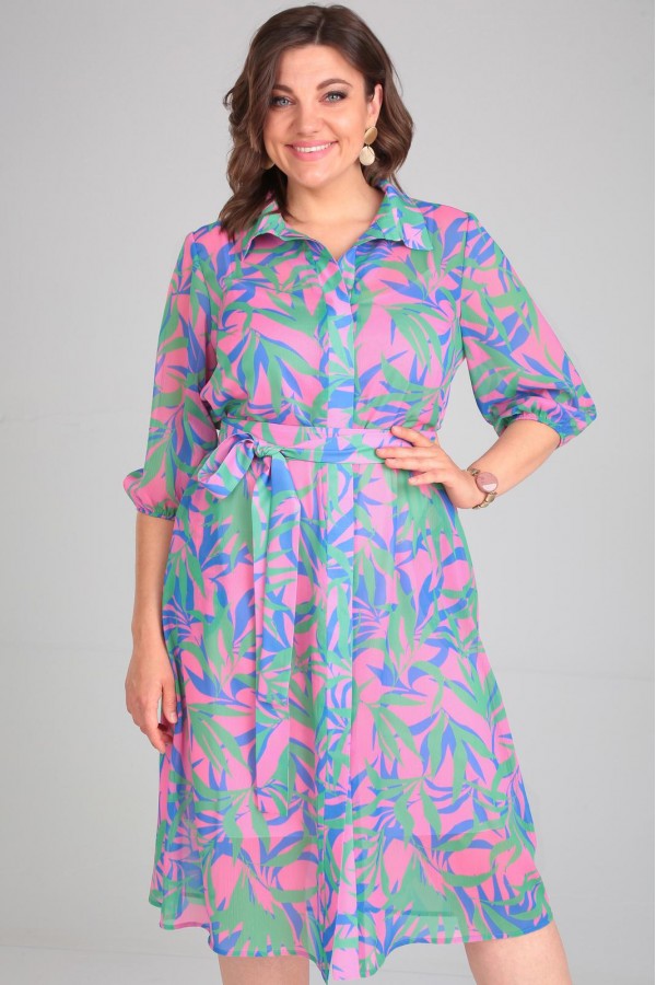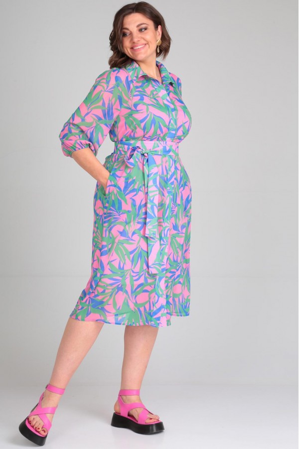 Платье А-образного силуэта под пояс, с подкладкой. Воротник рубашечного типа, планка с потайной застёжкой на петли пуговицы. В боковых швах карманы. Рукав ¾ на резинке. В комплекте пояс из основной ткани.... Читать далее...