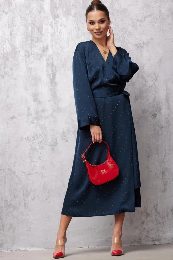 Платье на запах с асимметричной линией низа. Длина миди.