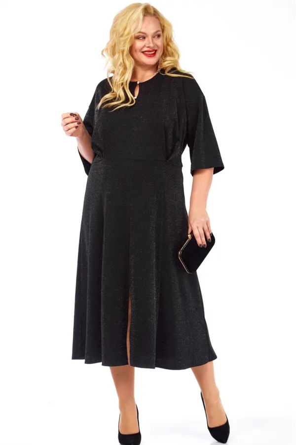 Эффектное женское платье расширенного силуэта к низу из ткани с нежной блестящей нитью. По переду платья в области талии заложены складки, круглая горловина с переходом в капельку обработана обтачкой , по капельке приш... Читать далее...