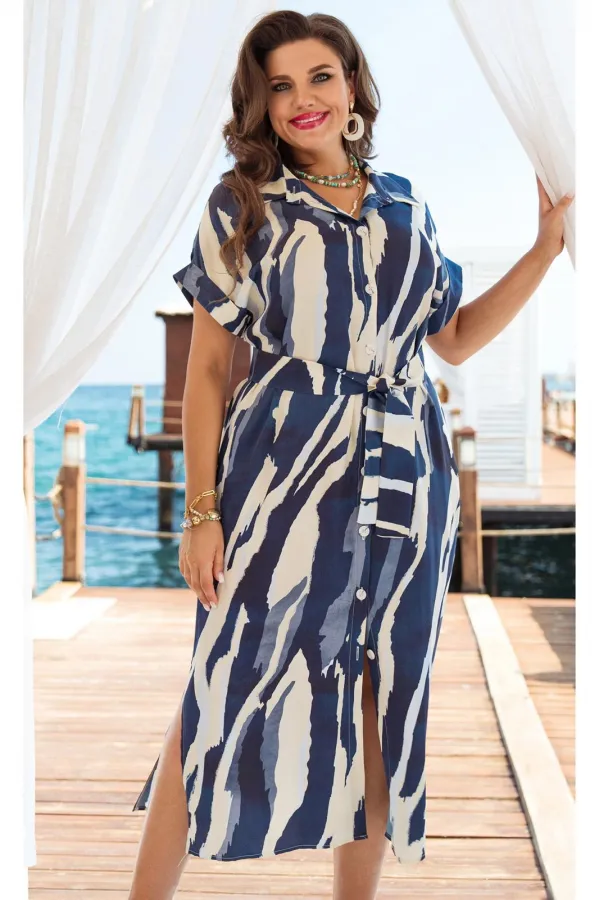 Ваш гардероб никак не может обойтись без этого наряда. Универсальное платье-рубашка прямого силуэта длины миди в стиле сафари с модным принтом. Для любителей приталенного силуэта в комплекте идет пояс. Платье с отложным ... Читать далее...