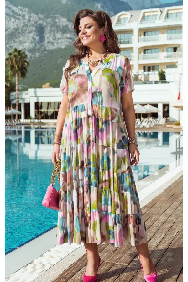 Комплект, который вскружит голову! Он восхитительно смотрится на фигуре, подчеркивая ваши формы и скрывая недостатки. Идеально подойдёт на жаркую летнюю погоду как для повседневной носки, так и для непринужденных прогулок и летних торжеств. Летящий силуэт, который всегда актуален и универсален, а игра фактур ткани делает модель уникальной. Комплект женский, состоящий из верхнего платья и нижнего платья.
