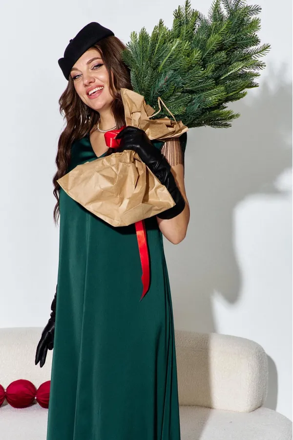 Платье для женщин в классическом стиле из легкой струящейся ткани небольшого объема полуприлегающего силуэта. Силуэт по геометрическому подобию напоминает трапецию, расширяющуюся к низу. Пластическая форма мягкая, плавная. Линия плеч немного поднята и имеет небольшой наклон. Платье цельнокроенное. Прилегание по талии немного выше естественной линии.Ширина проймы естественная, по высоте немного увеличена для создания эффектного выразительного образа. Деталь рукава выполнена небольшим элементом, по низу которого проходит декоративная тесьма-бахрома. Стильное длинное платье с идеальной посадкой по фигуре в тренде сезона подчеркивает женский элегантный образ. Платье современного фасона выполнено из качественных материалов с акцентом на фурнитуру в виде бахромы из металлических нитей. Вечернее платье станет идеальным вариантом для выхода в театр, концерт, торжественное мероприятие, фотосессию, вечеринку, торжественный вечер. Платье великолепно будет смотреться в ресторане, на юбилее, свадьбе, приеме, вручении премии «Оскар», «Гремми». Платье можно надеть на выпускной, на великосветскую тусовку. Длина платья 128 см.Подробные замеры смотрите на дополнительном фото. Подходит на рост 164-170.