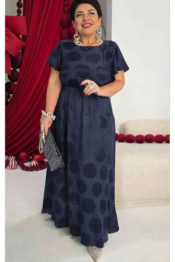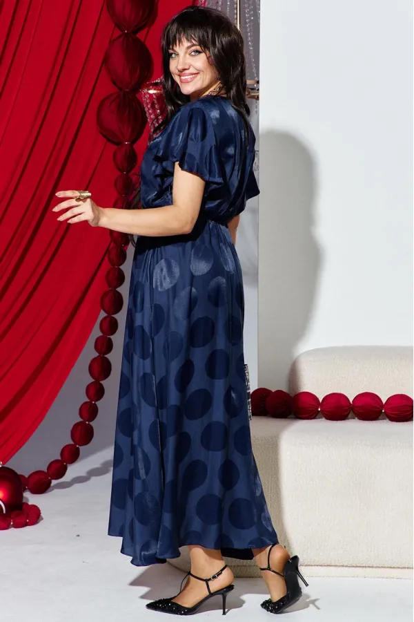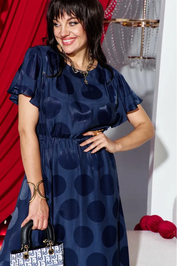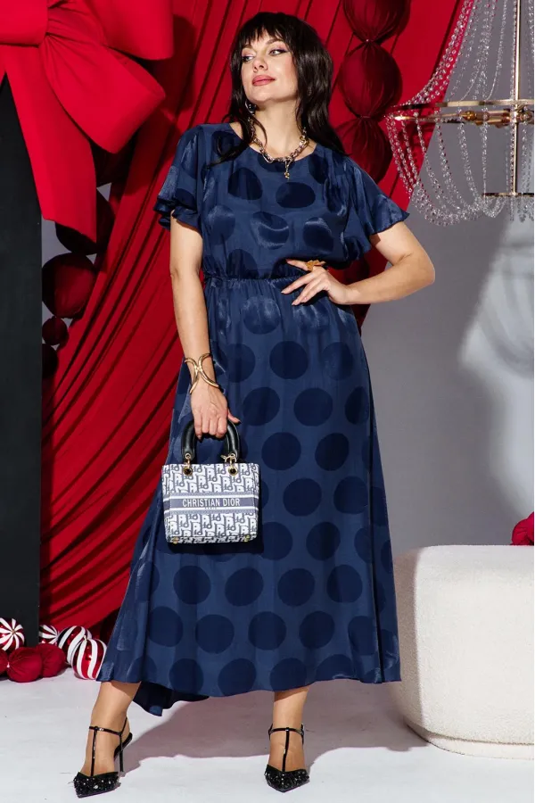 Платье для торжественных случаев в романтическом стиле из натуральной вискозы в сочетании с хлопковой нитью. Платье приталенного силуэта по геометрическому подобию напоминает трапецию, расширяющуюся к низу. Пластическая форма мягкая, плавная. Платье отрезное по линии талии. По лифу выполнены конструктивно-декоративные вертикальные подрезы от линии плеча до талии, а также застроченные складки у линии талии, направленные к плечу. По спинке в среднем шве выполнена застежка на петельку и пуговицу. Прилегание по талии достигнуто конструктивным подрезом, а также резиночкой. Плечевой пояс наклонный, мягко оформленный рукавом-воланом, выходящим из подреза лифа. Участок плотного прилегания по линии талии находится немного выше естественного уровня. Платье расширено по линии низа. Пройма по глубине и ширине умерена с характерным оформлением для комфортной эксплуатации. Покрой рукава короткий и приближен к волану. Стильное платье макси с идеальной посадкой по фигуре в тренде сезона подчеркивает женский элегантный образ. Платье удобное, современного фасона выполнено из качественных материалов. Вечернее платье станет идеальным вариантом для выхода в театр, концерт, торжественное мероприятие, фотосессию, вечеринку, торжественный вечер. Платье великолепно будет смотреться в ресторане, на юбилее, свадьбе, приеме, вручении премии «Оскар», «Гремми». Платье можно надеть на выпускной, на великосветскую тусовку. Длина платья 132 см, длина рукава 19 см.Подробные замеры смотрите на дополнительном фото. Подходит на рост 164-170.