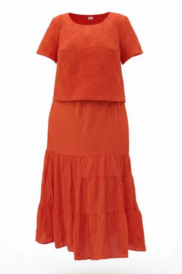 Мы в восторге от данной модели, а Вы? Летнее женское платье в насыщенном алом оттенке из ткани ришелье с тончайшей вышивкой ришелье, и однотонного материала представляет собой настоящее произведение искусства, воплощающее в себе свежесть и жизнерадостность тёплых солнечных дней. Шикарное платье из хлопка - идеально для всех! Украсит любую фигурку и сделает Ваш образ неотразимым! Замысловатый дизайн вышивки ришелье придаёт данной модели роскошный вид. Платье А-силуэта, с округлой горловиной и отлетной деталью лифа из вышитого ришелье, и с нагрудными выточками. Рукав в платье короткий из вышитого ришелье на просвет. Спинка в платье без особенностей. По низу платья идут горизонтальные воланы со сборкой. Главной изюминкой данной модели является мятый эффект по однотонной части платья, что позволяет Вам всегда эффектно выглядеть в этом наряде. Длина платья от высшей точки плечевого шва до низа 125 см . Длина рукава 22 см.Подробные замеры смотрите на дополнительном фото. Подходит на рост 164-170.