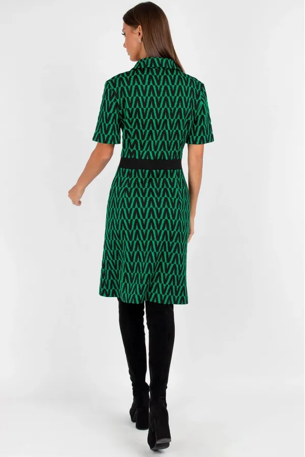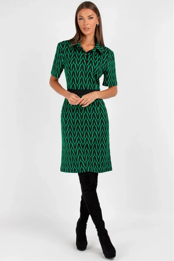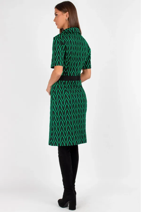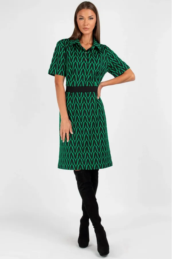 Платье женское полуприлегающего силуэта, отрезное по линиям талии. Линия талии с отделочной эластичной тесьмой. На полочке застежка на петли и пуговицы. Рукав втачной короткий. Изделие отлично садиться на фигуру благодаря хорошей эластичности ткани. Длина изделия 44, 46, 48: 96 см. Длина изделия 50, 52, 54: 101 см.Уход: ручная стирка при температуре не выше 30 С.