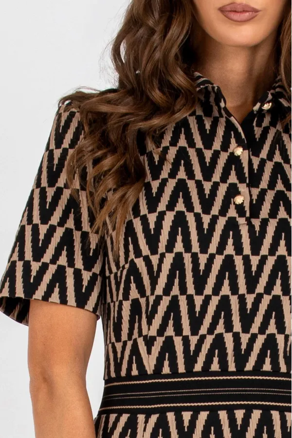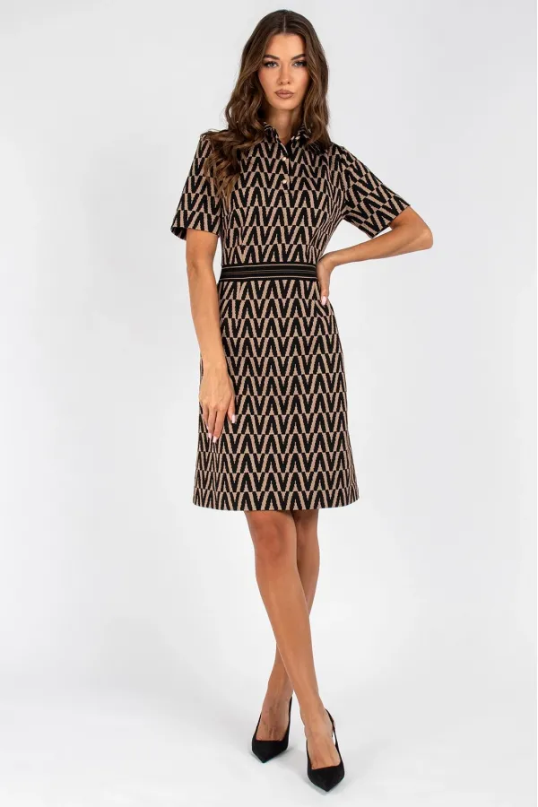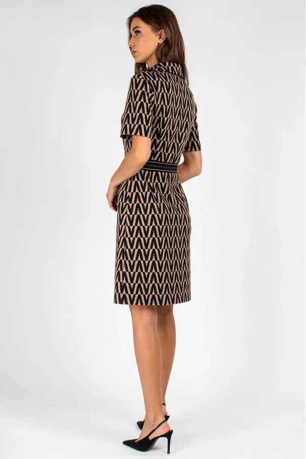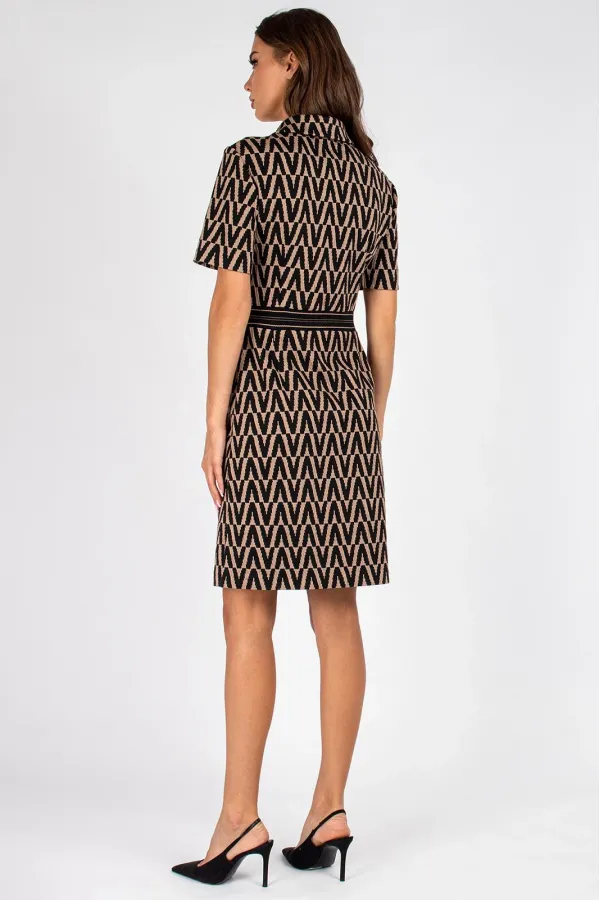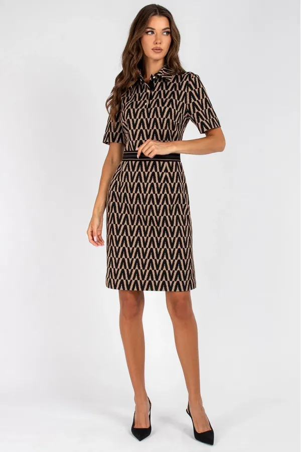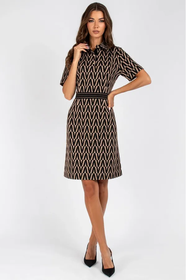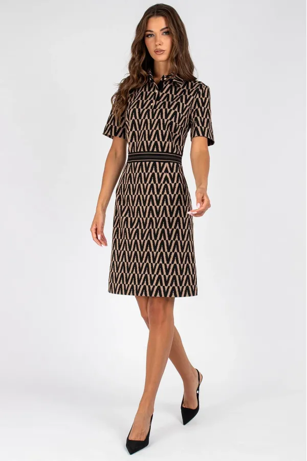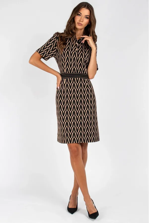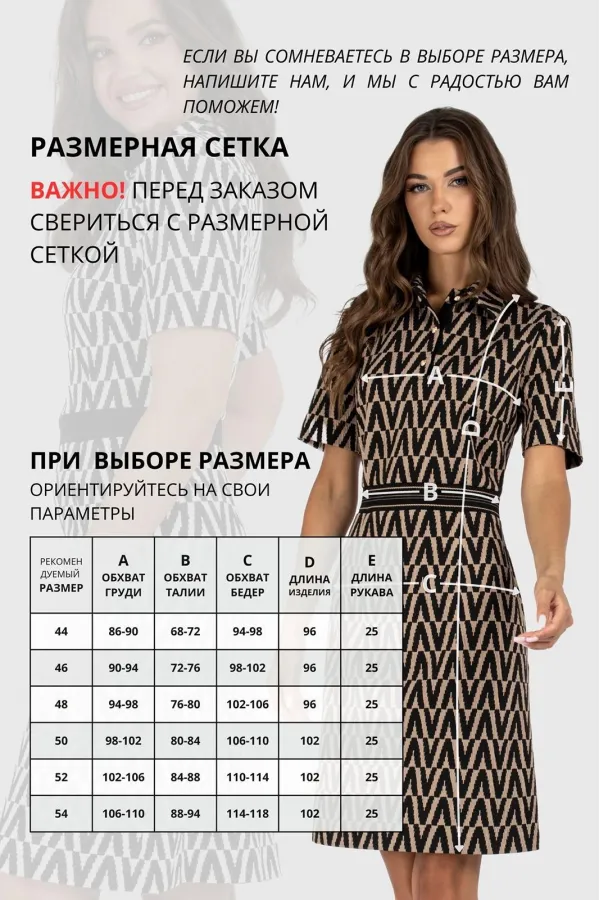 Платье женское полуприлегающего силуэта, отрезное по линиям талии. Линия талии с отделочной эластичной тесьмой. На полочке застежка на петли и пуговицы. Рукав втачной короткий. Изделие отлично садиться на фигуру благодаря хорошей эластичности ткани. Длина изделия 44, 46, 48: 96 см. Длина изделия 50, 52, 54: 101 см.Уход: ручная стирка при температуре не выше 30 С.
