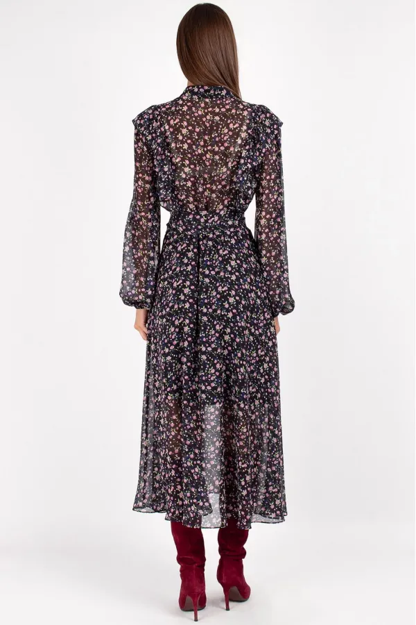 По талии завязывающейся пояс.Уход: бережная стирка при температуре не выше 30°С.