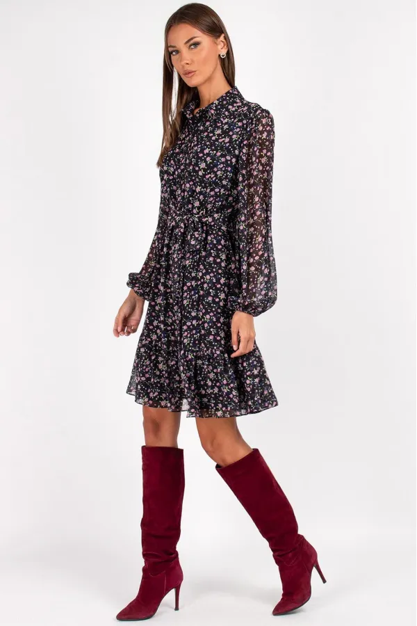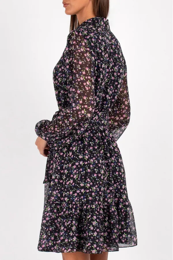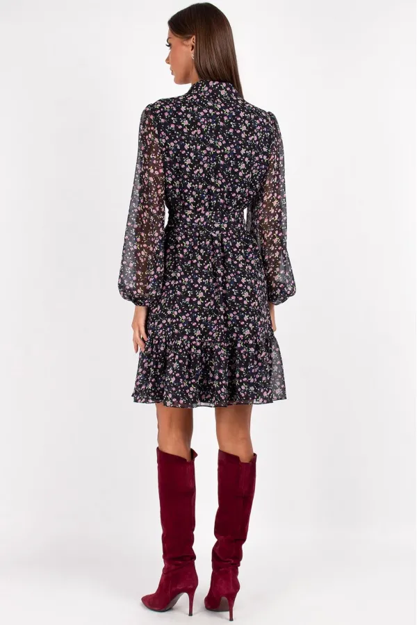 Сочетайте платье с замшевыми сапогами, добавьте кожаную куртку или ремень для более дерзкого образа. Аксессуары подчеркнут цветочный принт и создадут завершённый лук.Уход: бережная стирка при температуре не выше 30°С.