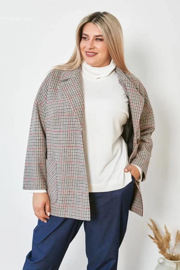 Привлекательный женский жакет от компании Luxury plus. Модель прямого силуэта, выполнена из тёплой костюмной ткани на подкладе, длиной за линию бёдер с принтом. Втачной длинный рукав и спущенная линия плеча. V-... Читать далее...