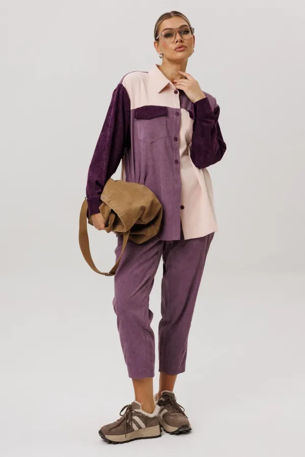 Вельветовая рубашка прямого силуэта от Анелли, сочетающая в себе нежность и мягкость оттенков цветов сирени во время цветения, – идеальное решение для тех, кто ценит стиль и уют.