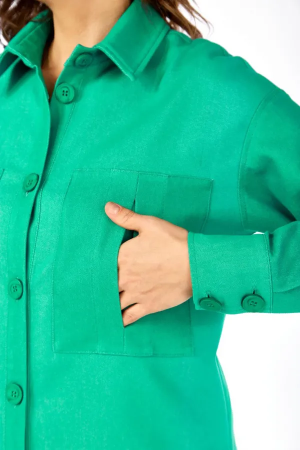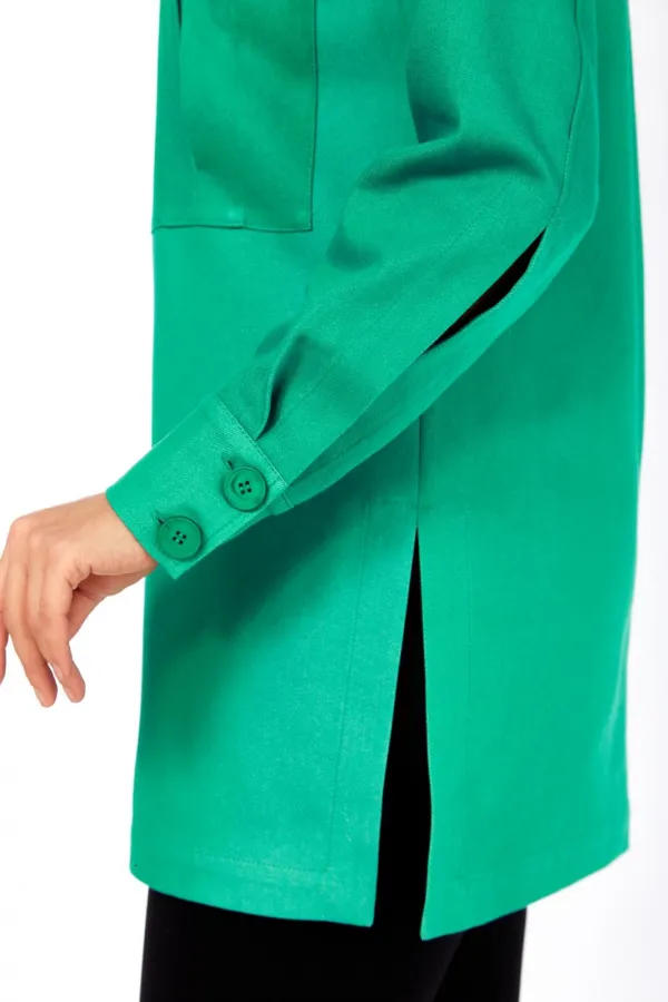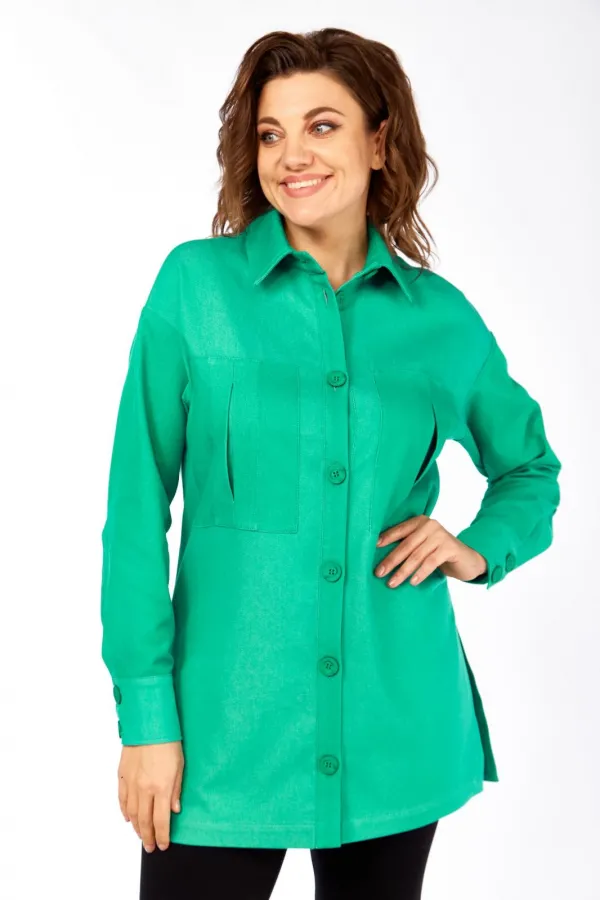 Рубашка свободного кроя, в стиле оверсайз. Силуэт свободный. На переде настрочены 2 фантазийных кармана. По боковым швам разрезы, отстроченные широкой отделочной строчкой. Рукав длинный двухшовный с длинным разрезом такж... Читать далее...