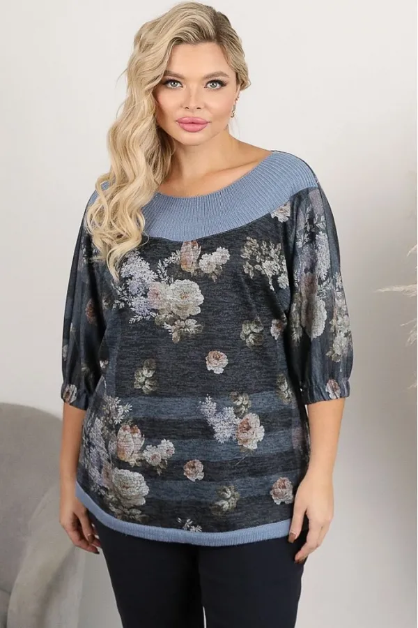 Трикотажная туника с рукавами три четверти от производителя Wisell. Модель прямого силуэта серо-голубого цвета с принтом. Круглый вырез обработан внешней обтачкой выполненной в технике имитирующей ручное вязание. Цельнок... Читать далее...