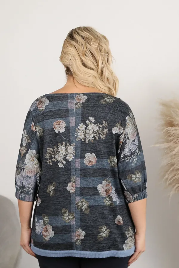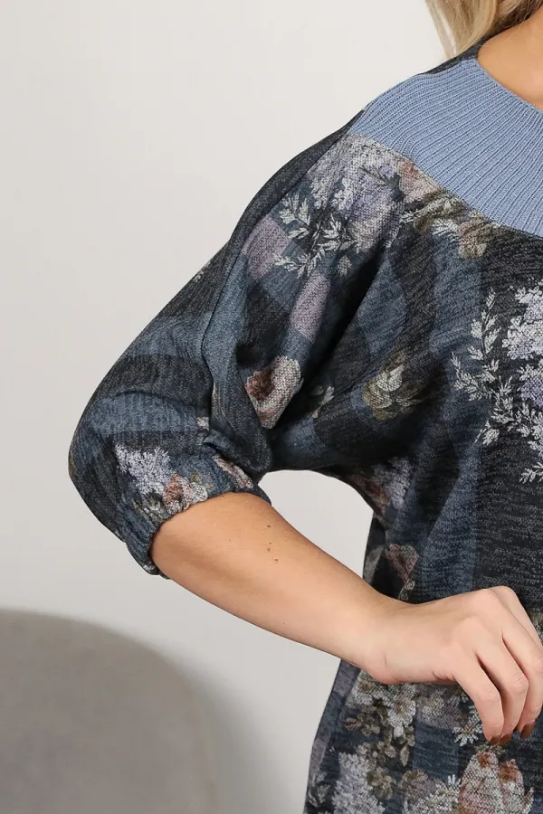 Трикотажная туника с рукавами три четверти от производителя Wisell. Модель прямого силуэта серо-голубого цвета с принтом. Круглый вырез обработан внешней обтачкой выполненной в технике имитирующей ручное вязание. Цельнокроеные рукава обработаны манжетом с резинкой. По низ изделия манжет выполненный в технике имитирующей ручное вязание. Идеальный выбор для Вашего стильного гардероба.