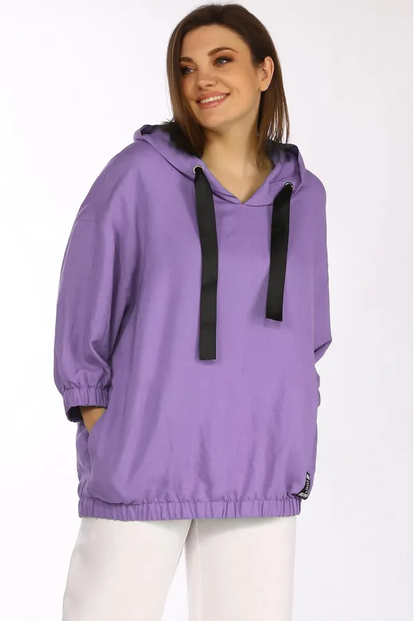 Туника в спортивном стиле из умягченного льна не требующей утюжки, свободного силуэта с капюшоном и боковыми карманами, рукав и низ блузона на эластичной ленте.