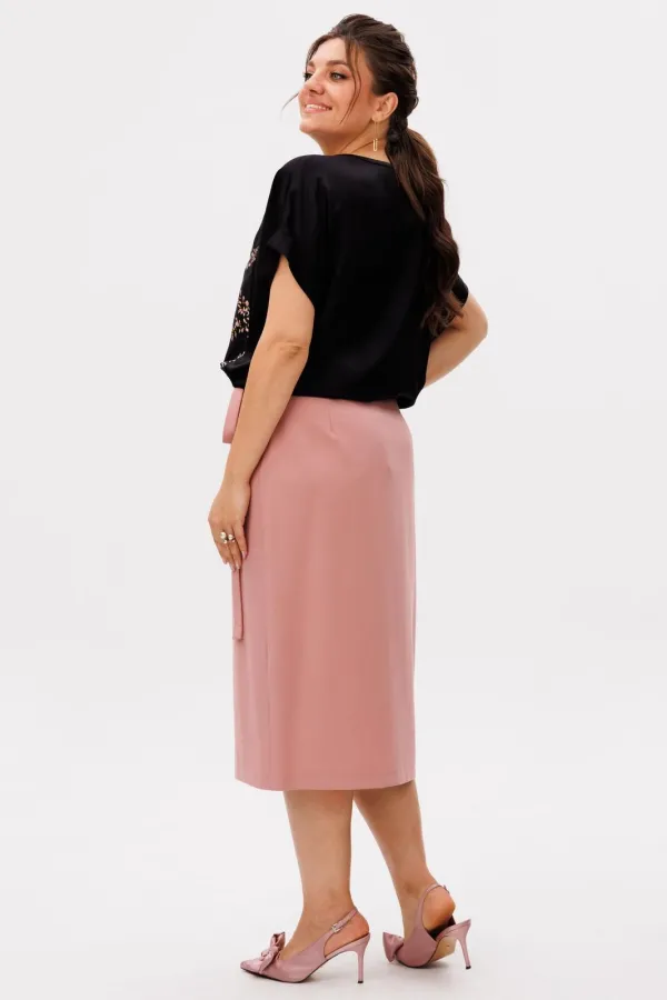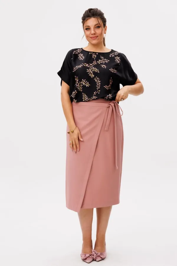 Юбка от Анелли в цвете «пыльная роза» мягко собирает образ и аккуратно подчеркивает фигуру. Длина ниже колена добавляет спокойствия и делает ее уместной в повседневной жизни - от работы до встреч в городе.