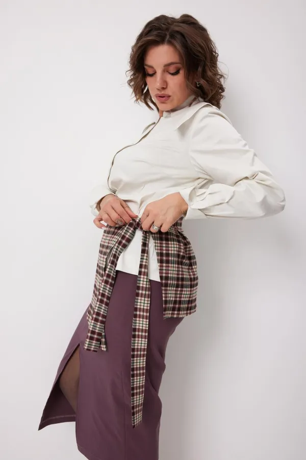 Баска отлитная (съёмная) на поясе с резинкой, который завязывается самостоятельно, выполнена из приятной к телу костюмной текстильной ткани в клетку.
