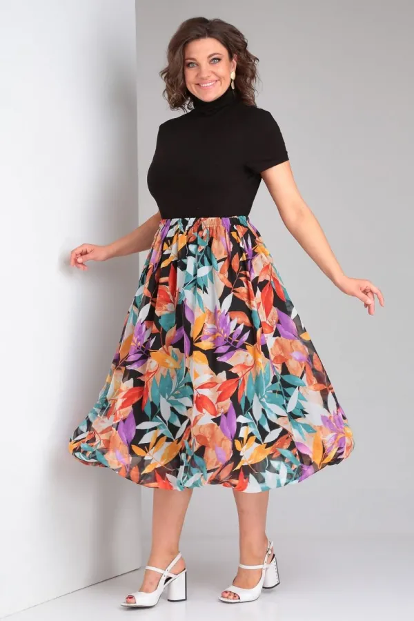 Верх юбки собран на резинку. Шифон, пришитый к подкладке, создает снизу красивый объем. Юбка пошита из качественного шифона модной в этом сезоне расцветки. Будет актуальна и для нарядного и для повседневного образа.