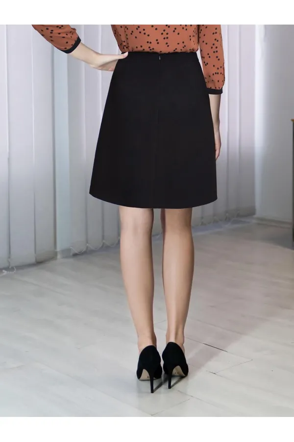 Красивая юбка трапеция с вертикальными молниями в рамку по переду поможет создать прекрасный комплект с джемпером либо блузкой. Изделие без подкладки.