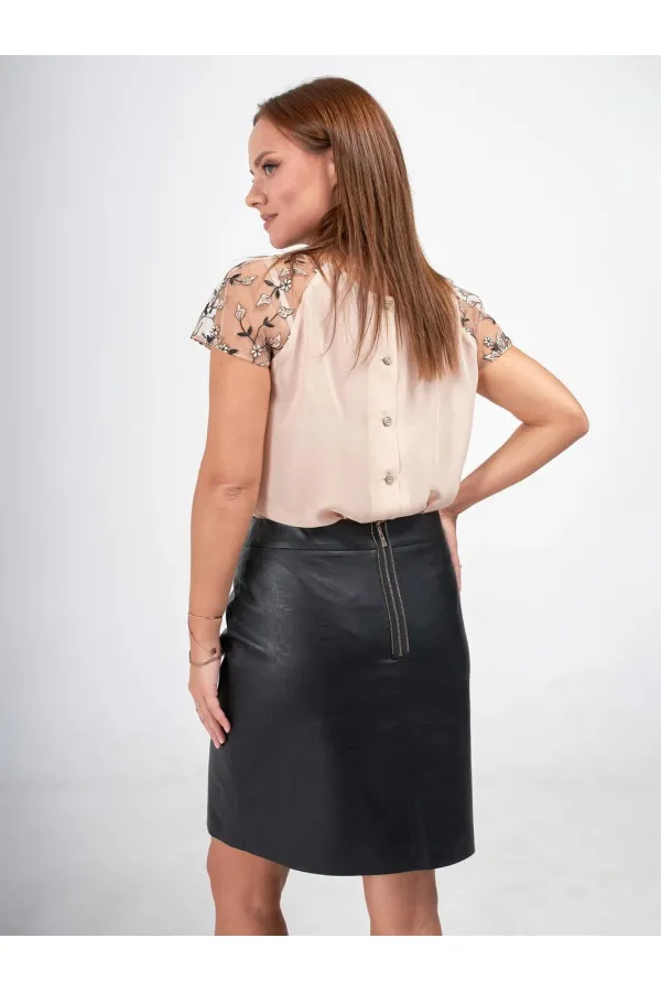 Легкая и стильная юбка из экокожи, идеальный выбор для любого сезона. Полуприлегающий силуэт юбки сделает вашу фигуру более стройной и женственной. Юбка до колена, что позволяет подчеркнуть красоту ваших ног. Декоративная функциональная молния на среднем шве заднего полотнища является не только стильным элементом дизайна, но и позволяет легко и удобно надевать и снимать юбку. Благодаря подкладке, она скользит по телу и сохраняет свою форму даже при активных движениях.