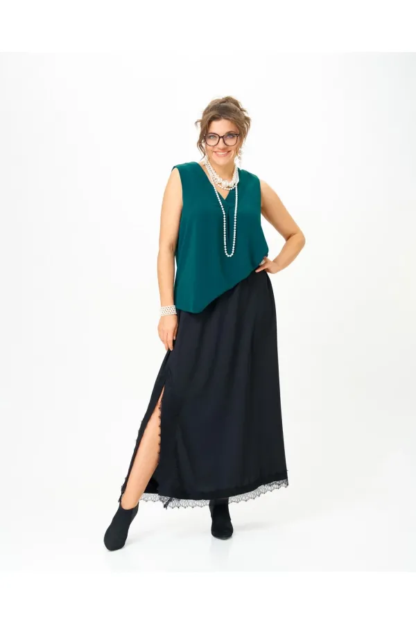 Юбка выполнена из из французского крепа. Ткань легко драпируется и очень приятный к телу.