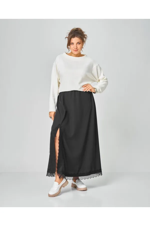 Очень эффектная модель: лёгкая сексуальность и нотка дерзости за счёт аккуратного разреза и правильного кружева. Прекрасно вписывается в любую капсулу — от повседневной до более вечерней.