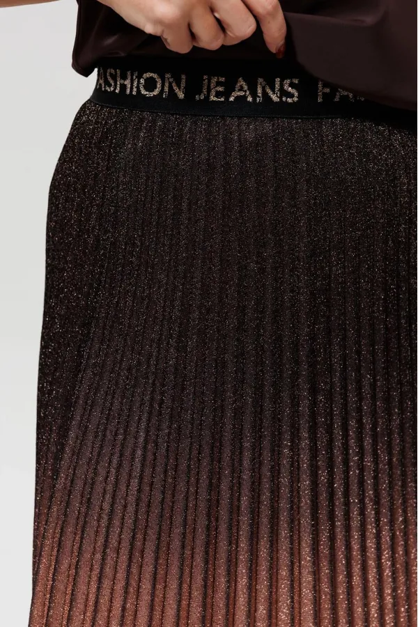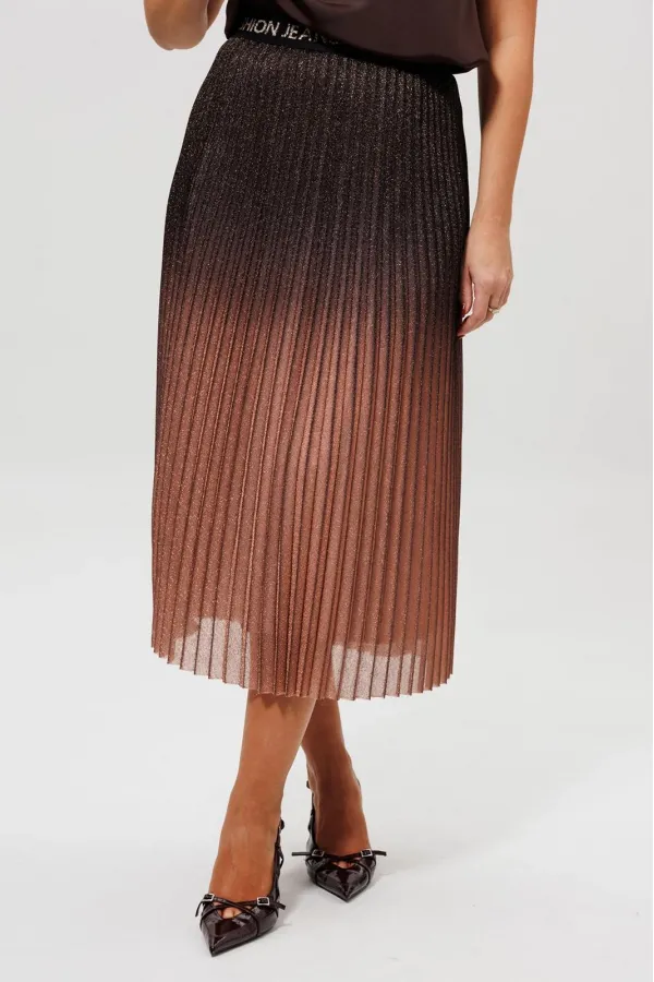 Эта модная юбка гофре с градиентом (Арт. 1276) станет ярким акцентом в вашем гардеробе. Модель выполнена в технике гофре и окрашена в изысканный градиент — от глубокого шоколадного верха к нежному светло-коричневому низу. Широкая резинка на поясе обеспечивает идеальную посадку по фигуре и максимальный комфорт. Юбка в складку отлично сочетается с базовыми топами (арт.1164), водолазками(арт 810) и укороченными жакетами, позволяя создавать стильные повседневные и вечерние образы. Размеры 46-52