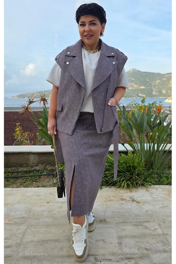 Женская юбка из денима с легкой потертостью придает винтажный шарм и характер. Она является своеобразной базой, которая легко комбинируется с различным верхом, позволяя быть разной, делая любой образ интересным. Юбка прямого силуэта, длины «миди» с ассиметричным подрезом по переду переходящим в разрез, с застёжкой на тесьму-молнию в гульфике и пуговицу в поясе юбки. По переду юбки прорезные карманы. По заднему полотнищу юбки накладные карманы. Пояс в юбке притачной со вставкой эластичной тесьмы-резинки в бочках, что обеспечивает комфортное прилегание по фигуре. Длина юбки 85см.Подробные замеры смотрите на дополнительном фото. Подходит на рост 164-170.